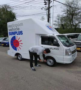 サンプラスでは、従業員の利便性と働きやすい環境づくりを目的として、このたび新たにエアコン付きトイレカーを導入いたしました。